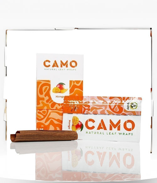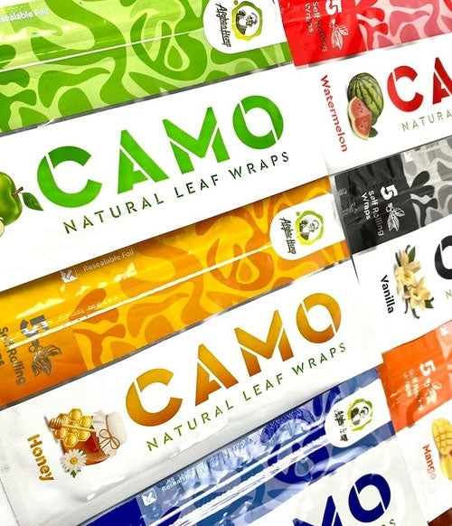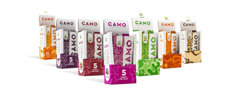 The Camo Natural Leaf Cones 12pk is here to bolster your supply of all natural tobacco free rolling products to cater to customers looking for an alternative to traditional smoking. The Leafs sold by Camo are guaranteed 100% tobacco free, non GMO, chamomile cones that are both easy to pack and satisfying to burn down. Coming with four cones in each pack the Camo Leafs are a perfect option for those looking for a ready to go out the box option and those just dipping their toes into the world of alternative rolling products. The cones are all king sized for maximum roasting time and are now available in 10 delicious flavors including a Russian Cream, Green Apple, and Honey.
