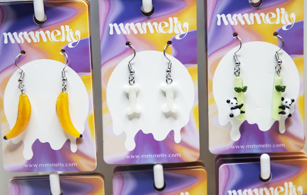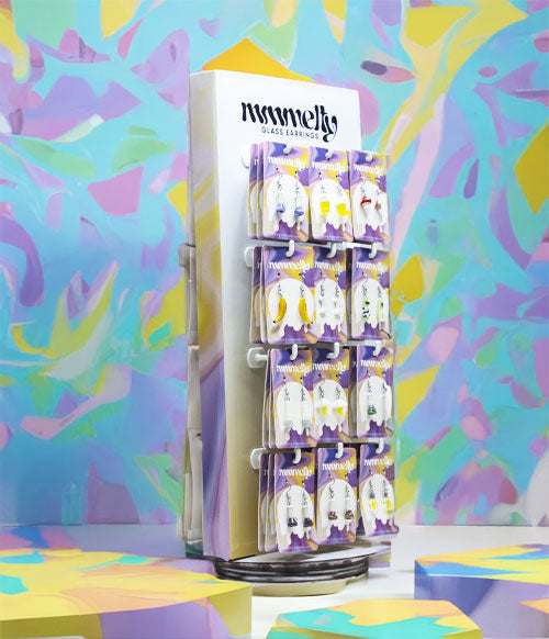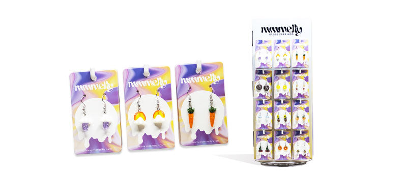 Interested in adding a bit of fun to your accessories collection for a new lane of sales? Then take a look at the Mmmelty 72pc Earring Display! This excellent set comes with 72 pairs of hand crafted glass earrings and comes in a variety of chill designs including water pipes, cherries, pandas, and more. The Mmmelty Display is a handy point of sale ready card board set up, giving you the option to easily display up to 120 Mmmelty Earrings in one convenient space. With real hand crafted designs and a commitment to quality glass, the Mmmelty 72pc Earring Display is the perfect addition to mix up your available accessories.